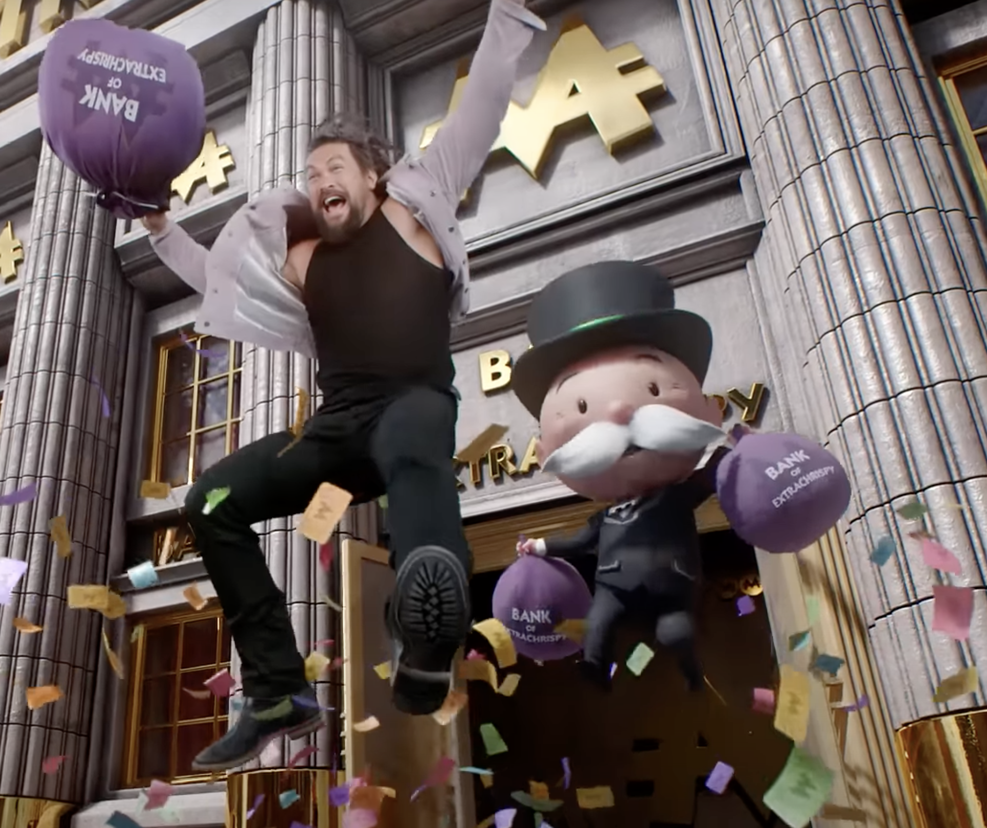 Chris Pratt, Keke Palmer, Jason Momoa, and Will Ferrell star in this MONOPOLY GO ad promoting the mobile game