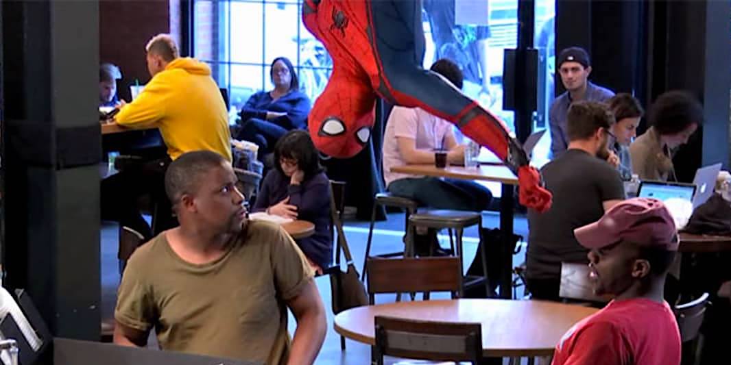 Sony’s big-budget marketing campaign to promote “Spider-Man: Homecoming” included having the web-slinger drop in on unsuspecting customers at Starbucks.