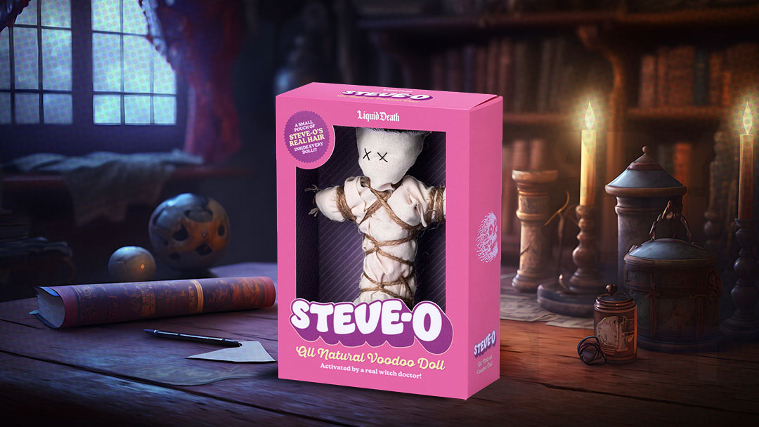 Famed daredevil Steve-O has been known to partake in the most extreme stunts, his antics known around the world. Meanwhile Liquid Death has been known to take their marketing to the edge, and it was only a matter of time until they crossed paths. This fateful meeting resulted in the creation of the Steve-O Voodoo Doll.